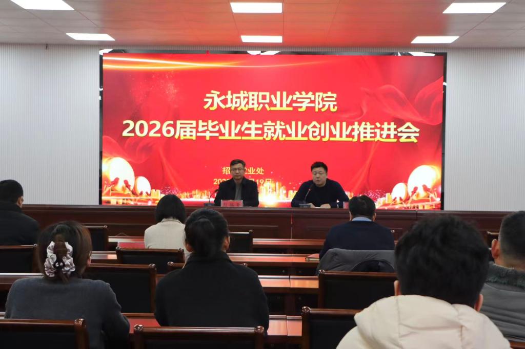 为深入贯彻落实2026届全国、全省普通高校毕业生就业创业工作会议精神,扎实推进学院2026届毕业生就业创业工作,12月19日下午,我院在清政楼三号会议室召开2026届毕业生就业创业工作推进会。学院党委委员、工会主席刘福奎出席并讲话。招生就业处全体人员,学生处及机电工程系、电子信息工程系、经济贸易系、文化艺术系等单位党政负责人,2026届全体毕业班辅导员参加会议。